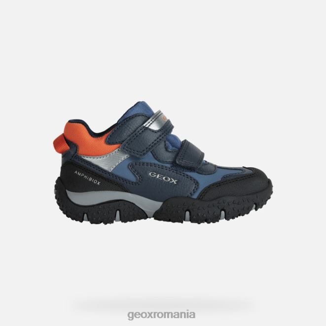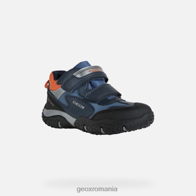 pantof pentru băiat care oferă protecție și respirabilitate, chiar și pe vreme rea. cu o parte superioară impermeabilă din durabuck și un material cu efect de piele răsturnată, baltic abx menține picioarele calde și protejează împotriva ploii. această versiune în bleumarin și portocaliu este o alegere ideală pentru aventurile elegante de iarnă în aer liber.