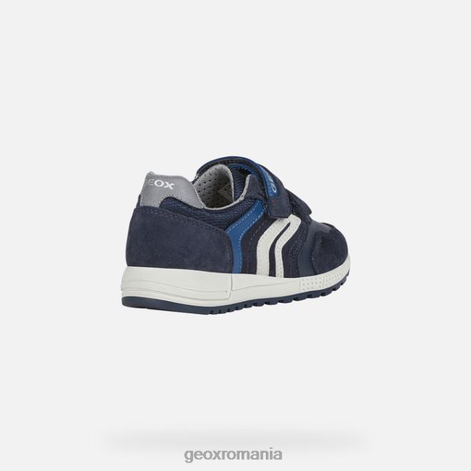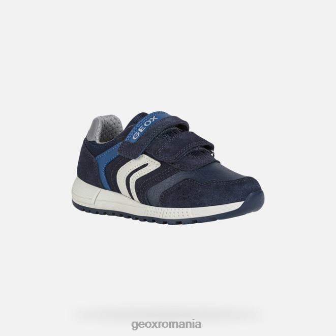 adidași confortabil pentru băiat, respirabil, cu o estetică activă. alben a fost realizat din piele intoarsa si un material cu efect de piele si se distinge prin atractivul sau retro si atmosfera de pantofi de alergat. redați într-o paletă de albastru-marin și împodobiți cu detalii albastru-închis airforce (raf), acest adidași se sprijină pe o talpă contrastantă respirabilă și are bretele confortabile, ceea ce îl face perfect pentru stilul versatil de zi cu zi.