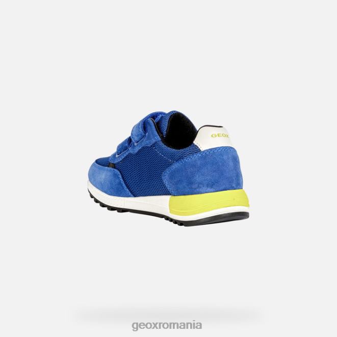 adidași pentru băiat în stil alergător, cu un design confortabil și respirabil. Inspirându-se din pantofii de alergare în stil vintage, acest adidași alben a fost așezat pe o talpă bicoloră și confecționat din plasă și piele de căprioară într-o paletă de albastru regal cu detalii verde lime. acest adidași confortabil respirabil este ideal pentru utilizarea de zi cu zi.