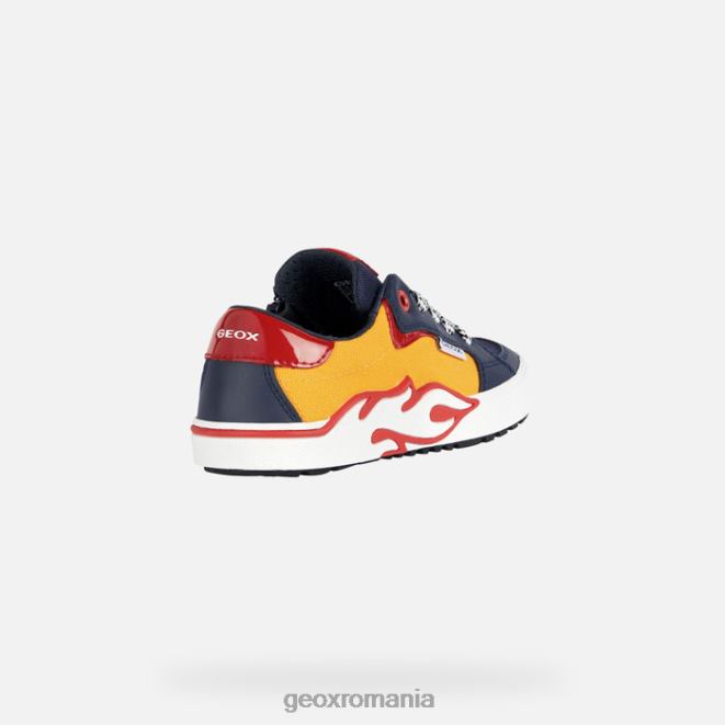 adidași pentru băiat, lejer, respirabil, decoltat, cu aspect contemporan și nuanțe sportive. redat într-o culoare atractivă galbenă și bleumarin, alphabeet are o înfrumusețare îndrăzneață pe partea laterală a tălpii. a fost realizat din pânză și un material cu efect de piele și va completa stilul casual și îmbrăcămintea informală cu o notă originală la modă.