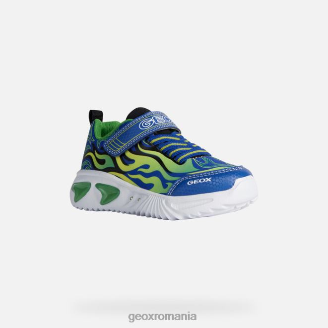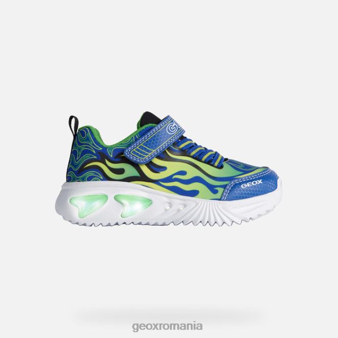 adidași de alergare pentru băieți, cu un design confortabil de amortizare. această versiune atrăgătoare de asistent are o căptușeală îndrăzneață în albastru regal și verde și este obligat să dinamizeze îmbrăcămintea pentru sport și aspectul potrivit școlii. Fabricat din material textil și dintr-un material imprimat cu efect de piele, are lumini sclipitoare încorporate în talpa exterioară, care vor asigura că copiii se vor distra la nesfârșit plimbându-se.