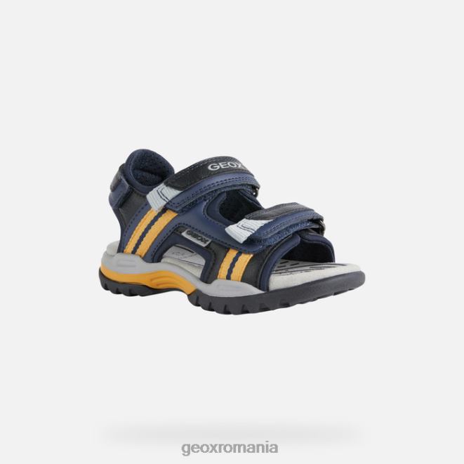 sandala pentru băiat – o piesă clasică de încălțăminte pentru exterior, concepută pentru aventuri. Confecționată din lycra și dintr-un material cu efect de piele, sandala Borealis este complet reglabilă și a fost creată special pentru a oferi niveluri ridicate de confort, respirabilitate și bunăstare. într-o nuanță de culoare bleumarin-albastru și galben intens, această versiune este o piesă de bază pentru garderobă, care îi va ajuta pe tinerii jucăuși în loc excelent.