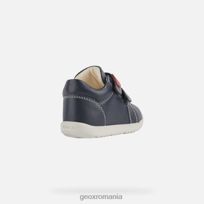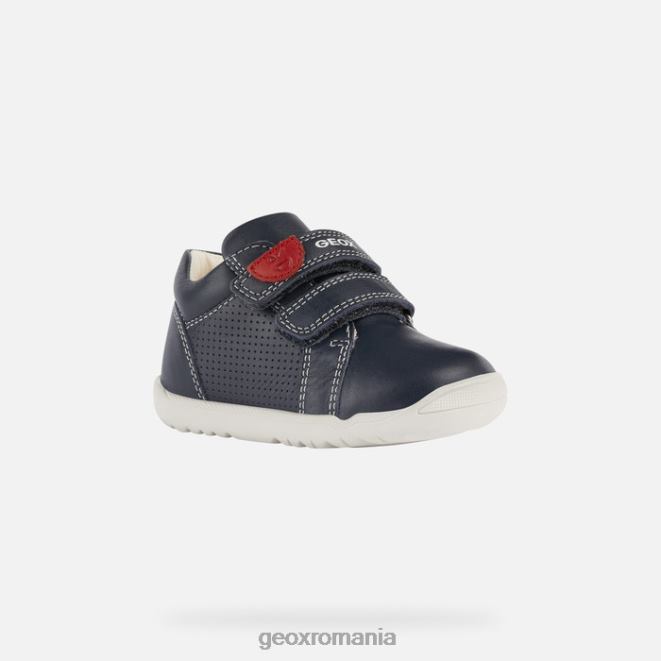 pantofi primii pentru băiat, moi și confortabili. macchia sunt pantofi cu aspect masculin într-o nuanță de bleumarin cu un detaliu roșu și sunt confecționați din piele moale nappa. cu aspectul lor modern, fără efort, sunt perfecte pentru a completa orice ținută, asigurând în același timp protecție pentru picioare, siguranță și confort total în primele mișcări ale copilului mic.