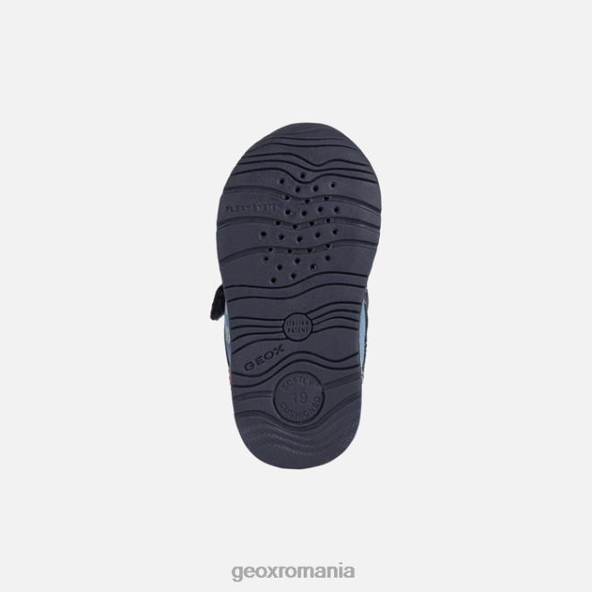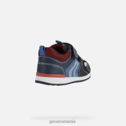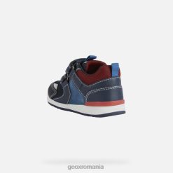 pantof confortabil și versatil pentru primii pași pentru băiat care se inspiră dintr-un design de pantofi de alergare. Creat pentru copiii mici aventuroși care fac primii pași în lume, rishon este un pantof flexibil respirabil, cu o parte superioară din piele de piele de căprioară și un material cu efect de piele într-o culoare intensă de bleumarin-albastru și roșu închis.
