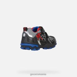 pantof decoltat pentru juniori, respirabil, cu un design respirabil, creat pentru micii fani ai omului păianjen. redat într-o variantă de culoare negru și roșu, buller este o piesă atractivă de încălțăminte de exterior realizată dintr-un amestec de material cu efect de piele răsturnată și țesătură. un produs al parteneriatului dintre geox și marvel, este potrivit pentru distracția și jocurile în aer liber cu prietenii și colegii de școală.