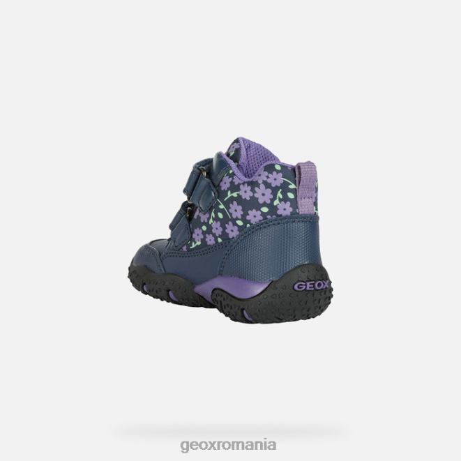 pantof de protecție impermeabil pentru fete, cu tăietură mijlocie, cu o senzație feminină. redată într-o paletă bleumarin și violet, această versiune a baltic abx va fi partenerul perfect pentru fetițele aventuroase, chiar și atunci când vremea rea și temperaturile scad. această piesă de încălțăminte respirabilă, cu o intrare ușoară a piciorului și o potrivire reglabilă, are o parte superioară dintr-un material imprimat cu efect de piele și nailon împodobit cu flori mici delicate.
