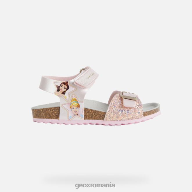 sandale de fetiță inspirate de prințese disney. ușoare și confortabile, ușor de îmbrăcat și perfecte pentru purtarea de zi cu zi, sandalele Adriel sunt inspirate de belle și cenușăreasa și vor încânta fetițele. un produs al parteneriatului dintre geox și disney, acestea sunt realizate dintr-un material cu efect de piele sidefat, țesătură și sclipici într-o paletă delicată de roz deschis, pentru un aspect dulce și romantic.