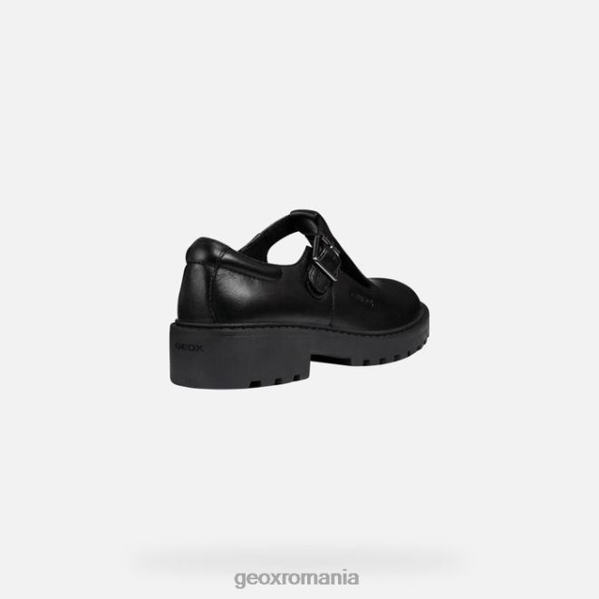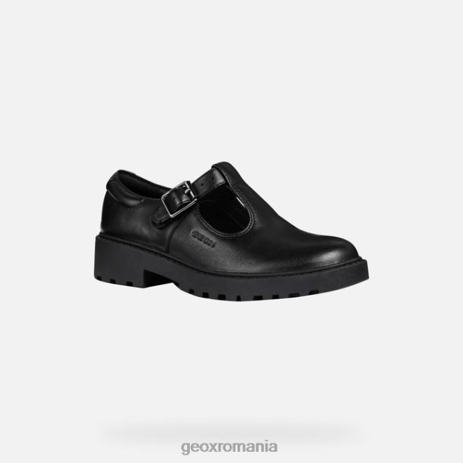 balet pentru fete cu aspect clasic, inspirat din uniformele școlare. Cu un design T-bar cu ochiuri pe partea din față a căptușei din piele simplă neagră, casey este un balerin respirabil, care va aduce farmec clasic și confort excepțional zilelor de școală fetiței tale.