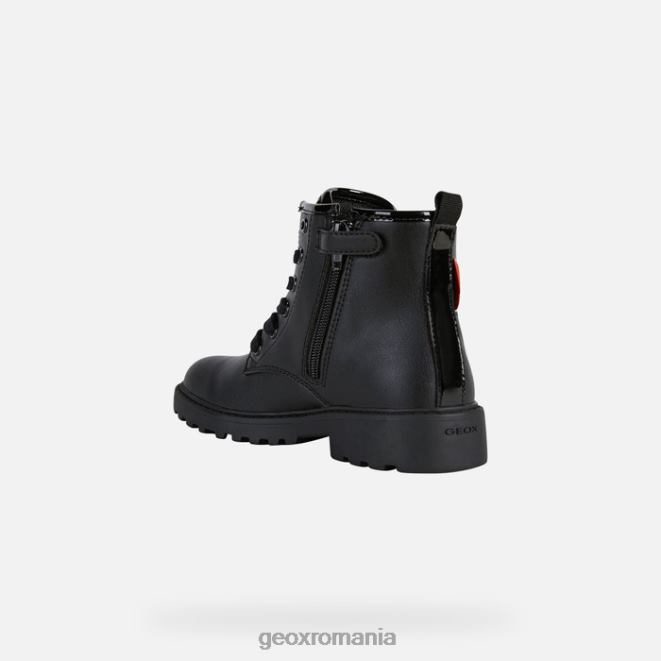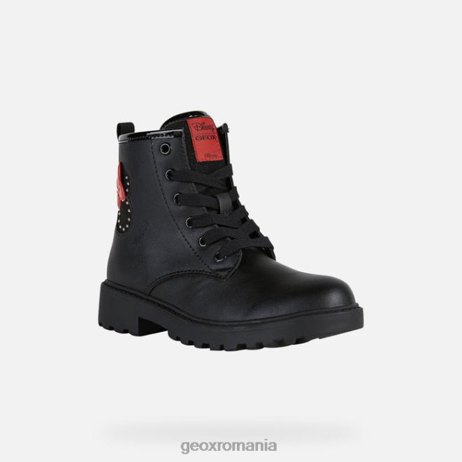 botine confortabile, respirabile, pentru fete, luându-și reperele modelelor de luptă în stil militar. confecționată dintr-un material cu efect de piele complet negru, partea superioară a lui Casey a fost împodobită cu detalii frumoase și profile care se inspiră din personajul de desene animate minnie mouse. eleganța rock-star și silueta drăguță a celebrei doamne șoarece conferă acestei piese informale de încălțăminte de iarnă un aer jucăuș.