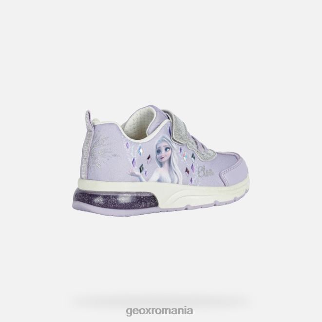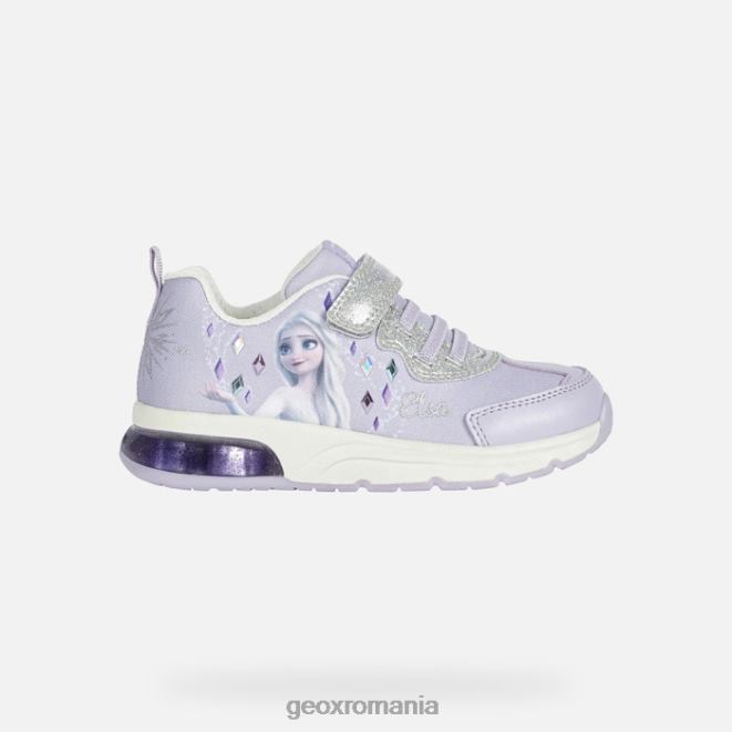 adidași confortabili, respirabili, echipați cu lumini sclipitoare. Un produs al parteneriatului dintre Geox și Disney, Spaceclub a fost realizat din țesătură și brevet sclipitor într-o culoare liliac și argintiu. cu caracterele înghețate pe partea superioară și luminile încorporate în talpa exterioară strălucitoare, această piesă are o senzație magică.