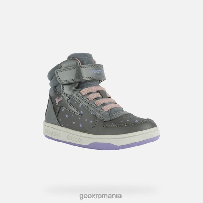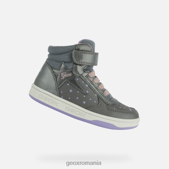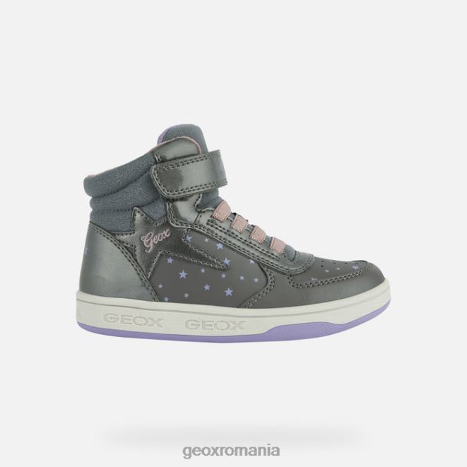 adidași confortabili, respirabili, pentru fetiță, care se bazează pe cele mai recente modă îndrăgite de fetițe. partea superioară de culoare argintiu închis dintr-un material cu efect de piele și un material sidefat cu efect de piele lacuită are accente violet și detalii feminine și conferă maltinului o atmosferă iconică de baschet. pentru o estetică activă, un vibe glam și un farmec irezistibil.