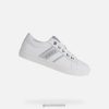Adidași flexibili, respirabili, decoltați pentru fete, cu o senzație feminină și aspect strălucitor. are partea superioară albă dintr-un material cu efect de piele completat cu detalii negre și a fost împodobită cu un detaliu strălucitor în formă de stea. kilwi emană eleganță retro la modă și este obligat să ridice îmbrăcămintea casual pe vreme frumoasă, cu o notă glam.