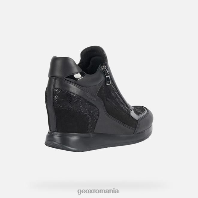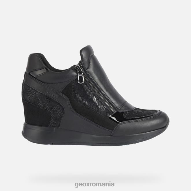 adidași de damă confortabili, respirabili, cu o estetică de pantofi de alergare și o atmosferă contemporană. Confecționată din nappa flexibilă și piele imprimată, această versiune complet neagră a lui nydame este o completare versatilă pentru orice look informal de zi cu zi. cu o talpă cu pană deosebit de confortabilă, emană nuanțe inconfundabile de pantofi de alergare, care aduc în prim-plan frumusețea elegantă a siluetei sale contemporane.