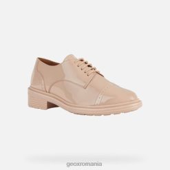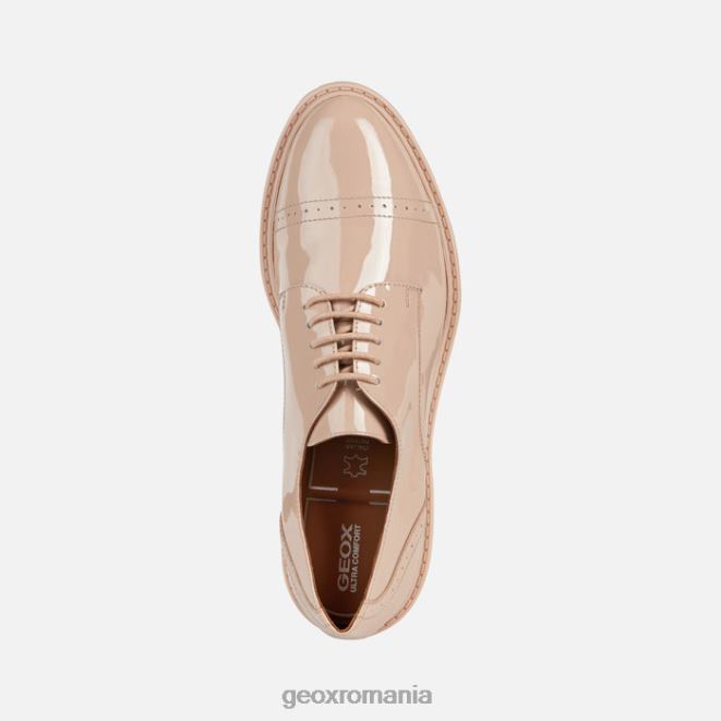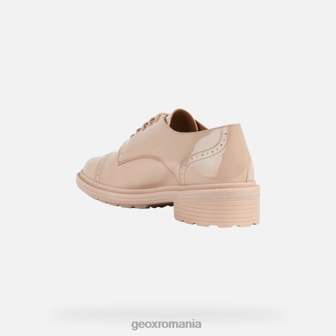 pantof de damă cu șireturi, cu vârf rotunjit și perforații brogue emblematice. Confectionat din piele lacuita roz-carne, placerea mersului ofera niveluri remarcabile de amortizare si confort. această piesă de încălțăminte are o inflexiune formală și o atmosferă de oraș și se va dovedi ideală pentru zilele de birou, excursii la cumpărături și comisioane de zi cu zi.
