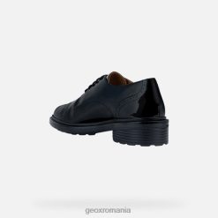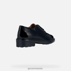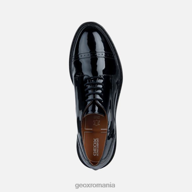 pantof de damă cu șireturi, cu vârf rotunjit și perforații brogue emblematice. Fabricat din piele neagră lacuită, plăcerea mersului oferă niveluri remarcabile de amortizare și confort. această piesă de încălțăminte are o inflexiune formală și o atmosferă de oraș și se va dovedi ideală pentru zilele de birou, excursii la cumpărături și comisioane de zi cu zi.