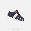 pantof pentru primii pași pentru bebeluș, cu o atmosferă casual și o mulțime de atractivitate activă. Confecționate din piele răsturnată și piele de căprioară în albastru bleumarin cu detalii roșii, fiecare este partenerul perfect pentru descoperirile copiilor într-o lume nouă interesantă. ușor de pus și de reglat cu o închidere practică cu bandă velcro dublă, oferă niveluri remarcabile de siguranță și respirabilitate, răsfățând picioarele cu o senzație de bine.