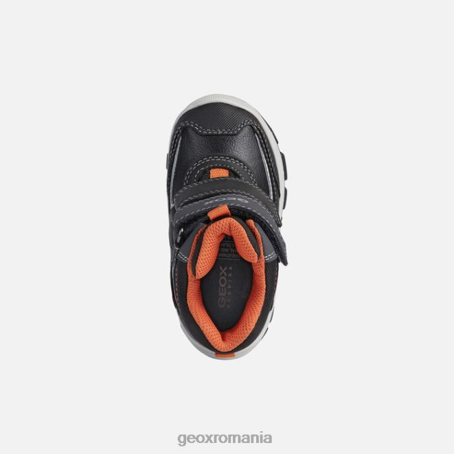 botancă confortabilă pentru băiat, cu un design impermeabil și respirabil. flanfil wpf este o botine practică impermeabilă, creată pentru a răsfăța picioarele mici cu confort, menținându-le calde și prăjite în cele mai reci, cele mai ploioase zile de iarnă. confecționat dintr-un material cu efect de piele și nailon, vine într-o paletă neagră cu detalii contrastante de portocaliu strălucitor.