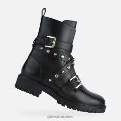 cizme de damă în stil motociclist de care nicio garderobă nu ar trebui să lipsească. hoara este o piesă de încălțăminte plină de viață, confortabilă și la modă, care este obligat să adauge o notă glam-rock oricărei ținute. partea superioară a fost realizată din piele neagră și împodobită cu două curele cu cataramă, precum și cu știfturi strălucitoare și îndrăznețe.