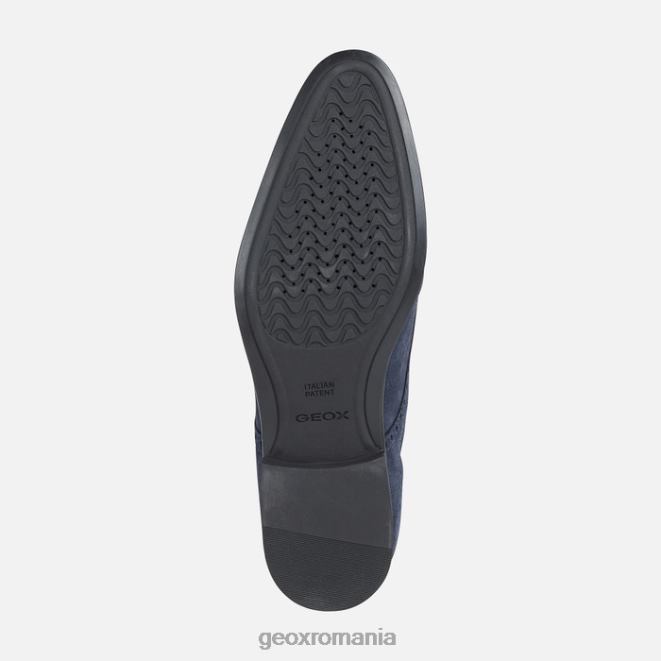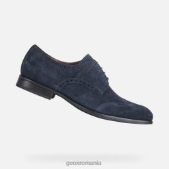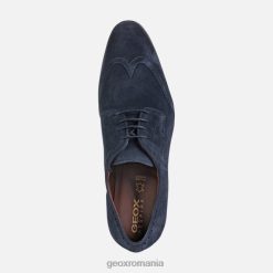pantof pentru bărbați respirabil, cu un vârf ușor conic și perforații brogue. cu un design extrem de amortizat și ușor, iacopo este un pantof cu șiret cu vârful aripii cu aspect formal, realizat din piele intoarsa supla bleumarin, decorat cu decoratiuni brogue rafinate. o piesă perfectă pentru confortul de dimineață până seara, acest pantof va fi o completare ideală pentru ținuta business și look-urile formale.