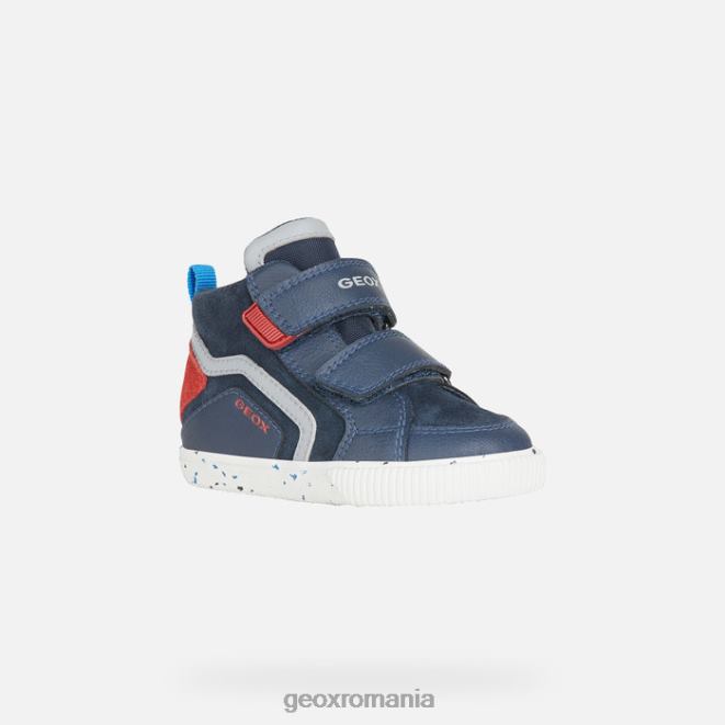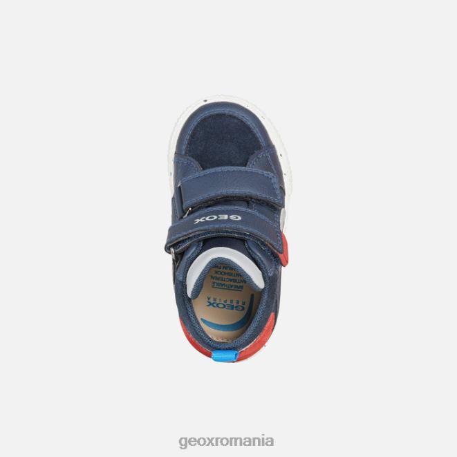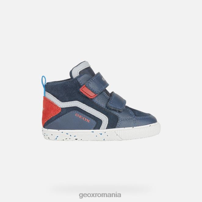 adidași comozi la modă pentru băieți. kilwi este un adidași flexibil, respirabil, cu o atmosferă urbană contemporană și o parte superioară din piele de piele de căprioară și un material cu efect de piele ceară într-o culoare bleumarin-albastru și roșu. acest model elegant va injecta personalitate instantanee în ținutele de zi cu zi.