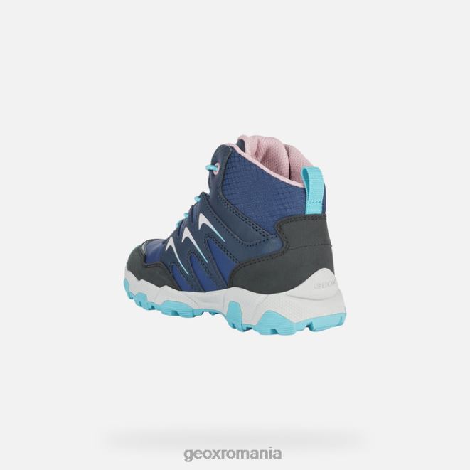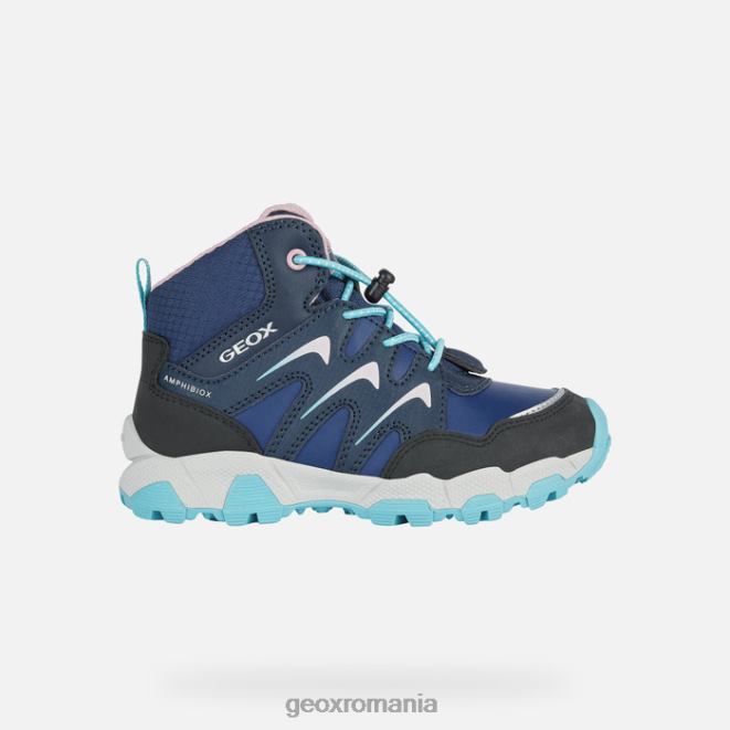 adidași juniori cu tăietură mijlocie, cu un design confortabil impermeabil și o estetică în stil drumeție. partea superioară este dintr-un material cu efect de piele și nailon și a fost redată într-o paletă versatilă de bleumarin și albastru decolorat. confortabil și protector, magnetar abx a fost proiectat pentru activități în aer liber și vreme ploioasă rece.