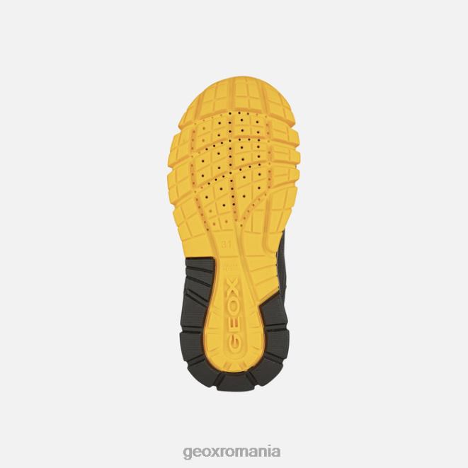 adidași pentru băiat cu tăietură mijlocie, cu un design protector respirabil, care se va dovedi a fi ideal pentru vremea rece. redată într-o paletă de albastru bleumarin și galben, această versiune de montrack abx se deosebește prin atractivitatea în aer liber. confortabil și rezistent la apă, a fost confecționat dintr-un material cu efect de piele cerat și nailon și este perfect pentru distracția și jocurile copiilor mici în aer liber, chiar și în zilele ploioase.