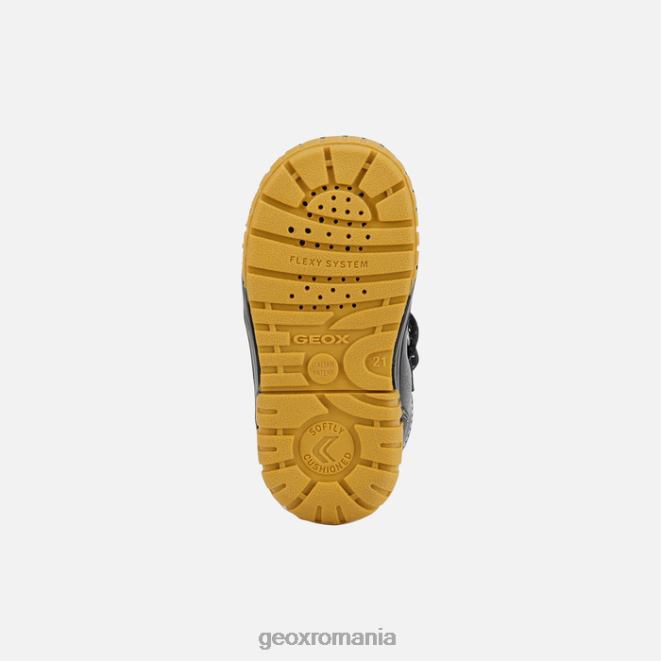 botancă impermeabilă pentru bebeluși cu un design perfect pentru iarnă. Fabricat din piele intoarsa si material cu efect de piele cerata, omar este o piesa de incaltaminte confortabila intr-o culoare negru si galben. construcția hibridă o face o soluție perfectă pentru vreme rea, în timp ce talpa exterioară protectoare respirabilă aduce confort și o senzație de bunăstare pe tot parcursul zilei.