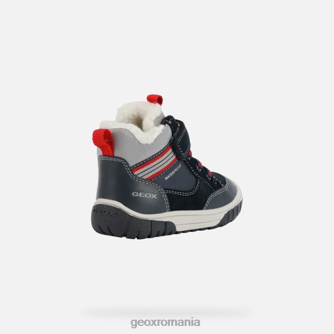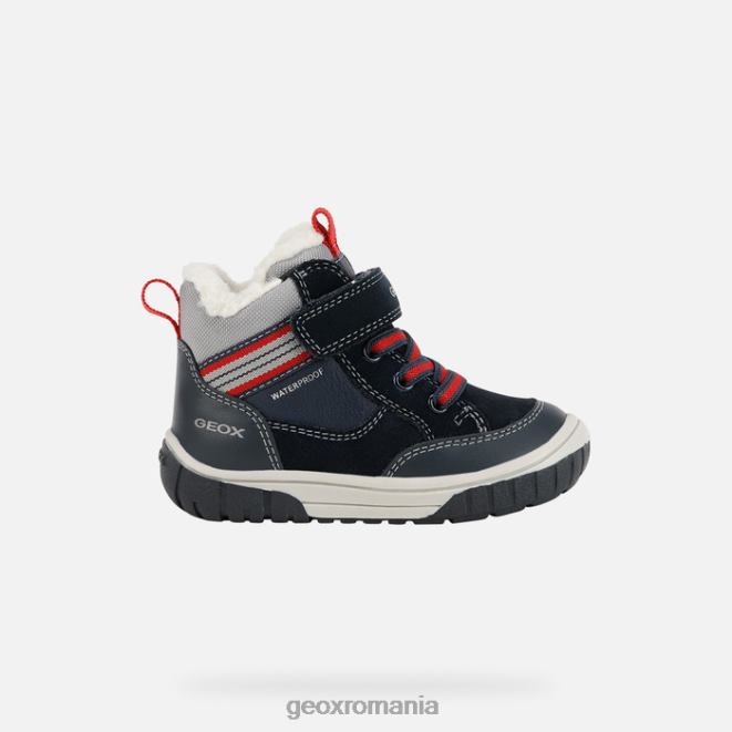 botancă impermeabilă pentru băiat, cu un design perfect pentru iarnă. Confecționată din piele de căprioară și țesătură, omar este o piesă confortabilă de încălțăminte într-o culoare bleumarin-albastru și roșu. construcția hibridă impermeabilă o face o soluție ideală pentru vremea umedă ploioasă, în timp ce talpa exterioară protectoare respirabilă oferă confort și o senzație de bunăstare pe tot parcursul zilei.