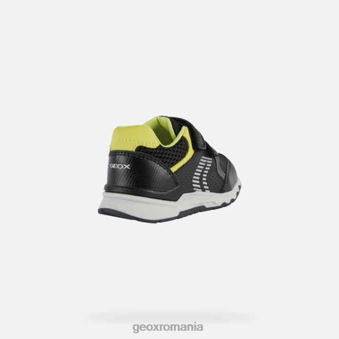 adidași de alergare decoltați pentru băiat, care emană o atmosferă fericită. Fabricat dintr-un material imprimat cu efect de piele și dintr-un material simplu cu efect de piele într-o paletă neagră cu detalii de culoare verde lime strălucitoare, pyrip oferă niveluri ridicate de confort și respirabilitate. acest adidași practic se va preta oricărei ocazii, fie că este vorba de activități de petrecere a timpului liber sau de rutina de zi cu zi.