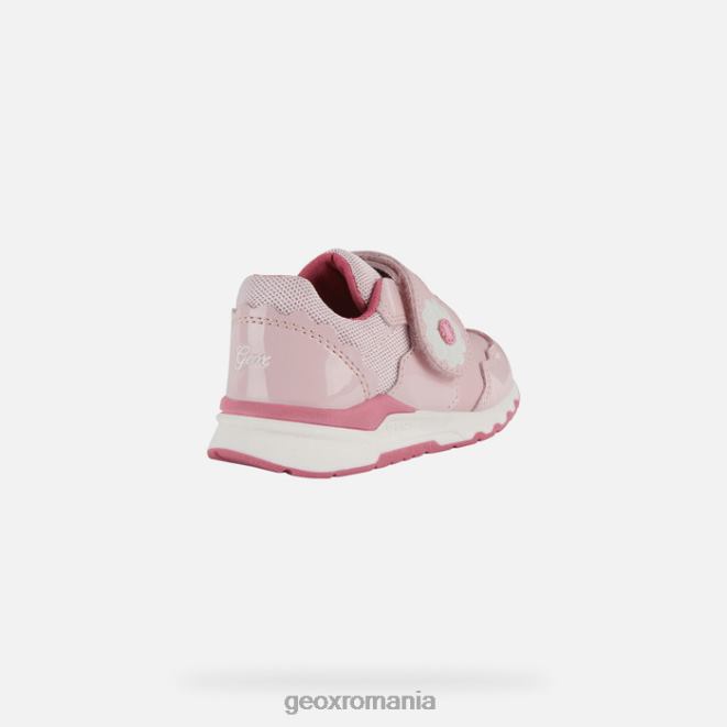 adidași pentru fată în stil alergător, cu un design drăguț și respirabil. Confecționați dintr-un material cu efect de piele lacuită și plasă strălucitoare într-o paletă roz deschis îmbunătățită cu detalii roz fucsia, adidașii pyrip au o estetică relaxată, dar feminină, de pantofi de alergare, care se va dovedi perfect pentru purtarea de zi cu zi.