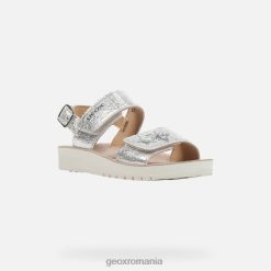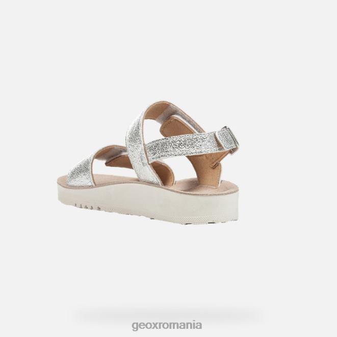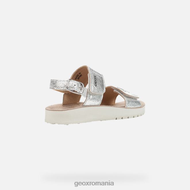 Sandală casual confortabilă, respirabilă, pentru fetiță, care se potrivește cu siguranță oricărei ocazii. o alegere ideală pentru confort și o senzație de bine indiferent de situație, costarei este o sandală cu aspect casual și încărcată cu detalii la modă, cum ar fi partea superioară dintr-un material cu efect de piele metalizat argintiu și ornamentele de pe cureaua din față. .
