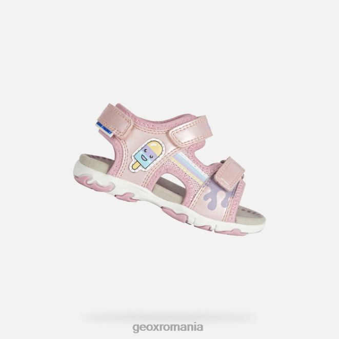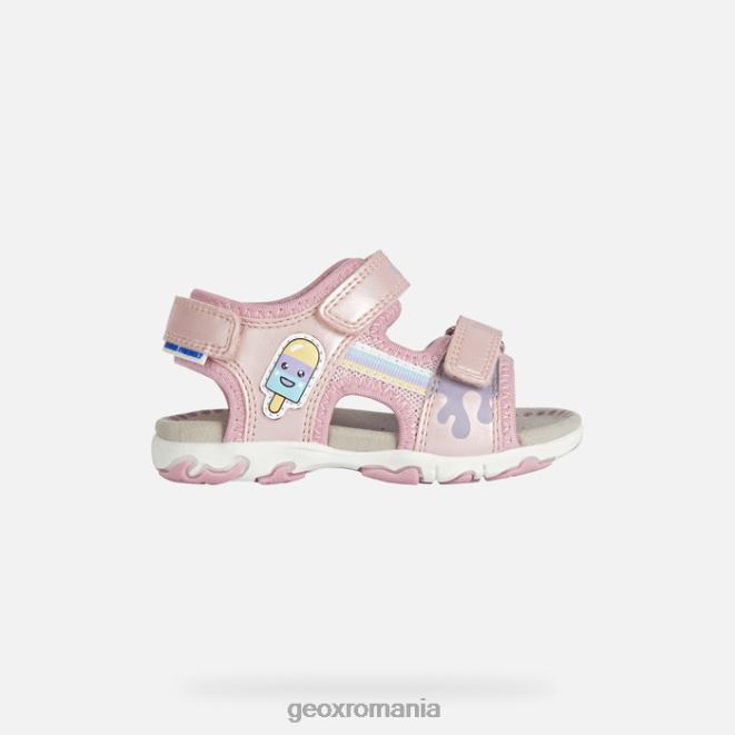 Sandală ușoară cu vârf deschis pentru fete, cu o atmosferă casual-sportiv și o închidere triplă cu cârlig și buclă reglabilă. Confecționat dintr-un material cu efect de piele sidefat și spandex într-o paletă roz pal, flaffee a fost împodobit cu modele drăguțe cu imprimeu de vară. este flexibil, respirabil și rezistent la apă, sprijinindu-se pe o talpă exterioară care se va dovedi eficientă și pe teren alunecos.