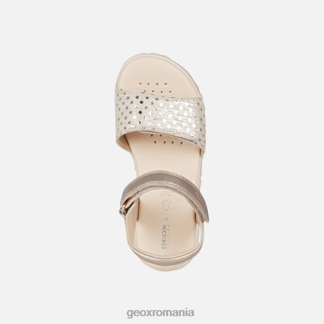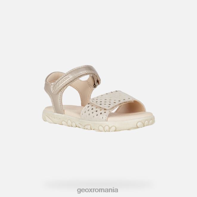 Sandală de vară reglabilă pentru fetiță, cu un design confortabil și respirabil. Special concepută pentru picioarele delicate ale fetițelor mici, sandala Haiti are bretele practice reglabile, o talpă confortabilă din piele și o parte superioară din piele intoarsa în relief și un material cu efect de piele sidefat într-o nuanță versatilă de bej. a fost completat cu flori superbe colorate în relief pe partea de jos a tălpii care ajută la îmbunătățirea aderenței.