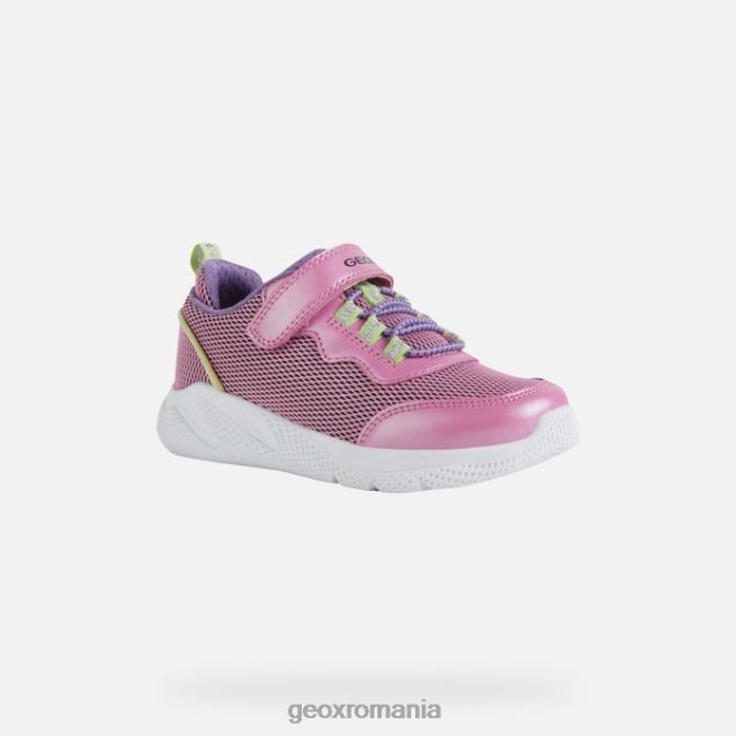 teniși sustenabili pentru fete cu un aspect la modă. ușoare și confortabile, adidașii sprintye au un design durabil încorporat de partea superioară într-un amestec de țesătură reciclată și un material cu efect de piele. cu un aspect atrăgător și contemporan într-o paletă fucsia și lime, sunt pantofii perfecti de zi cu zi pentru a se asocia cu ținute casual.