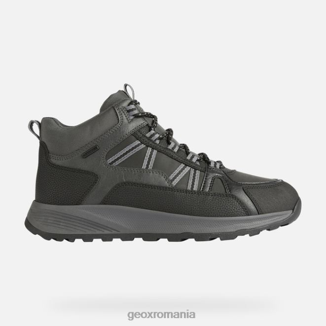 Adidași de bărbați impermeabili și respirabili, cu tăietură mijlocie, care emană o estetică inconfundabilă în aer liber. Confecționată dintr-un material cu efect de piele ceară și dintr-un material cu efect de piele răsturnat într-o paletă neagră, această versiune de terrestre abx prezintă detalii în contrast de culoare și emană atât atitudine urbană, cât și farmec contemporan. confortabil, cu o aderență remarcabilă, este soluția supremă pentru averse și condiții meteorologice dure.