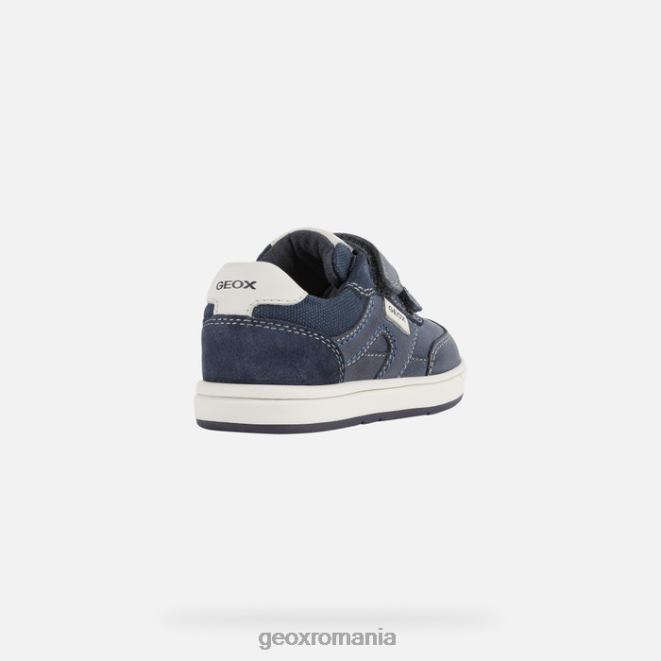 adidași comozi și casual pentru băiat care se inspiră din pantofii de tenis. trottola se sprijină pe o talpă cutie, care este un indicator clar al inspirației sale de teren de tenis. Confecționați din piele cerată și piele de căprioară într-o culoare bleumarin-alb, acest adidași oferă niveluri excepționale de confort și respirabilitate și este o piesă perfectă de încălțăminte de zi cu zi pentru micii aventurieri care încep să-și exploreze lumea. Caracteristicile de