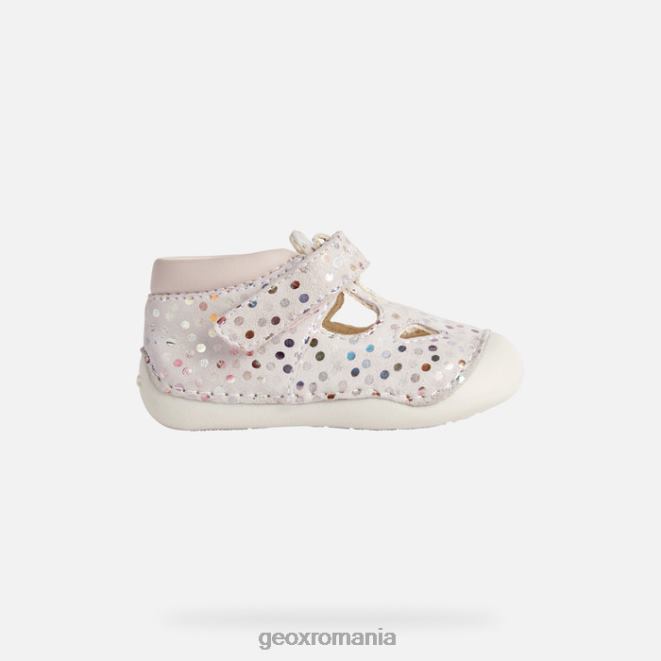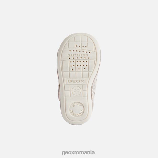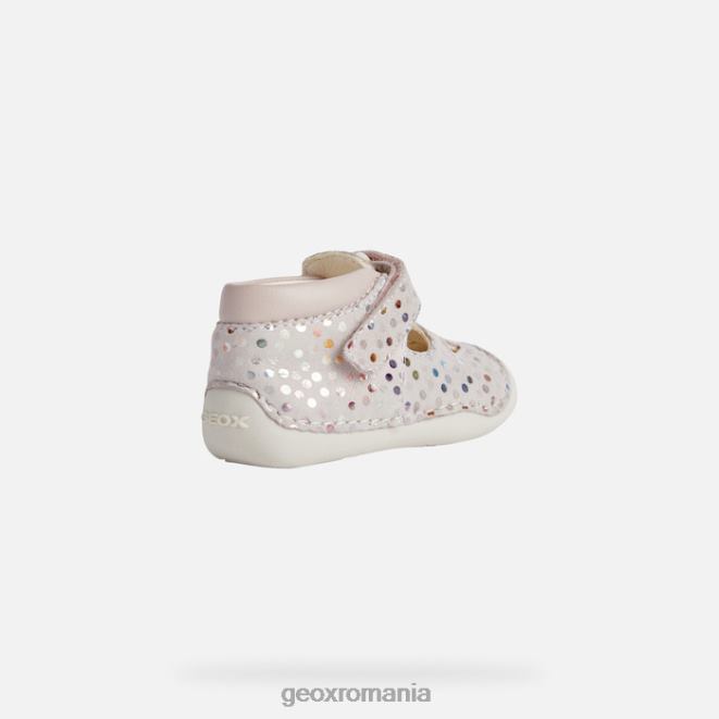 pantof confortabil respirabil pentru nou-născuți, conceput pentru a se târâi. tutim este o piesă de încălțăminte confortabilă, concepută pentru a le menține confortabil pe fetițe atunci când încep să se miște. Fabricat din piele intoarsa imprimata si dintr-un material cu efect de piele sidefat, vine intr-o paleta destul de roz pal care scoate in evidenta frumusetea sa stralucitoare. confortabil și respirabil, este complet reglabil și are o intrare foarte ușoară a piciorului.