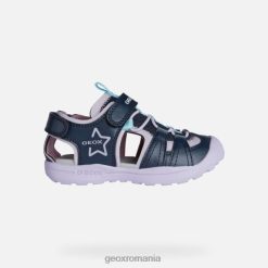 Sandală pentru fată în stil exterior, cu un design prietenos cu apa și respirabil. confectionata din plasa si un material cu efect de piele de culoare bleumarin cu detalii roz neon-fucsia, aceasta versiune de wader este piesa perfecta de incaltaminte pentru activitatile in aer liber ale copiilor. emanând un stil lejer, are apărătoare de protecție pe degete și călcâi și poate fi purtat în și în afara apei.