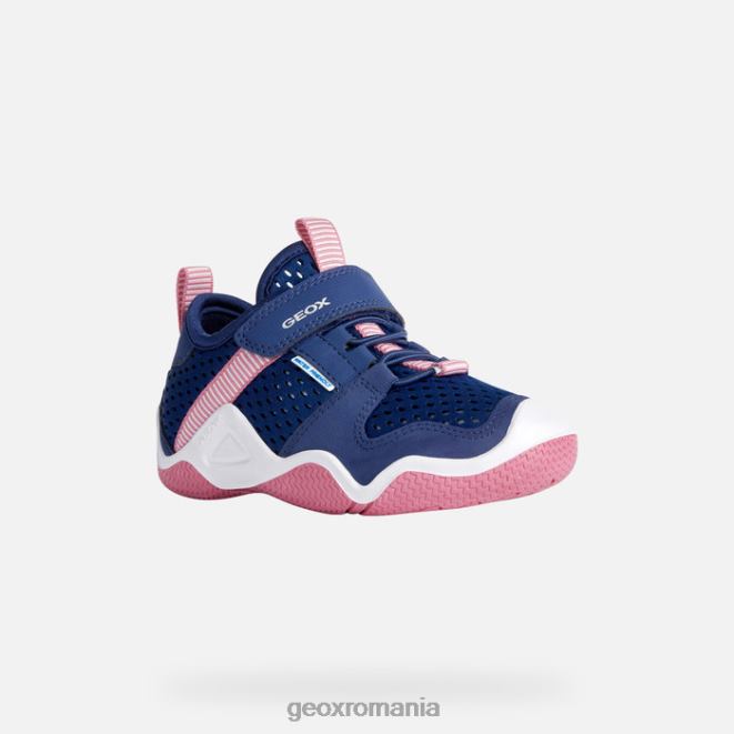 Adidași pentru juniori, ușori, respirabili, cu o estetică în aer liber. această versiune de wader bleumarin cu accente roz fucsia are o senzație modernă și modernă, care o face o alegere ideală pentru activitățile de timp liber. Fabricat din plasă și dintr-un material cu efect de piele, oferă starea de bine, flexibilitate și sprijin tot timpul.